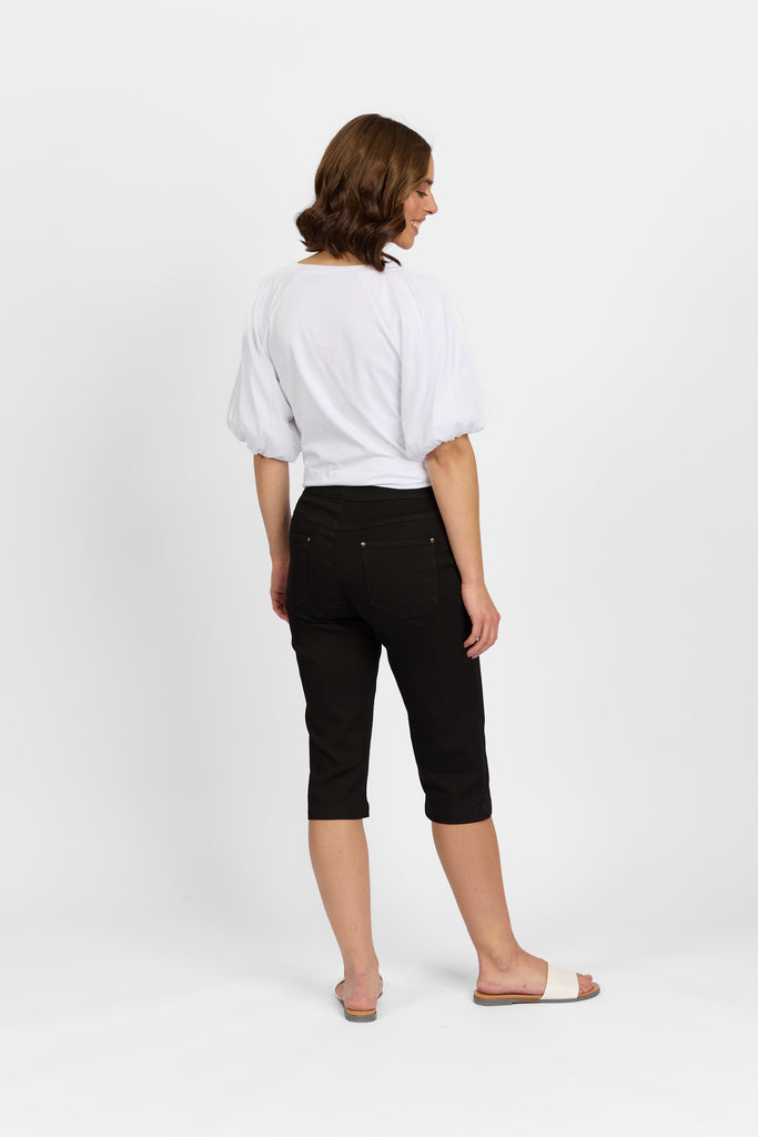 • Pull on style featuring a wide flat elastic waistband with a mid rise finish